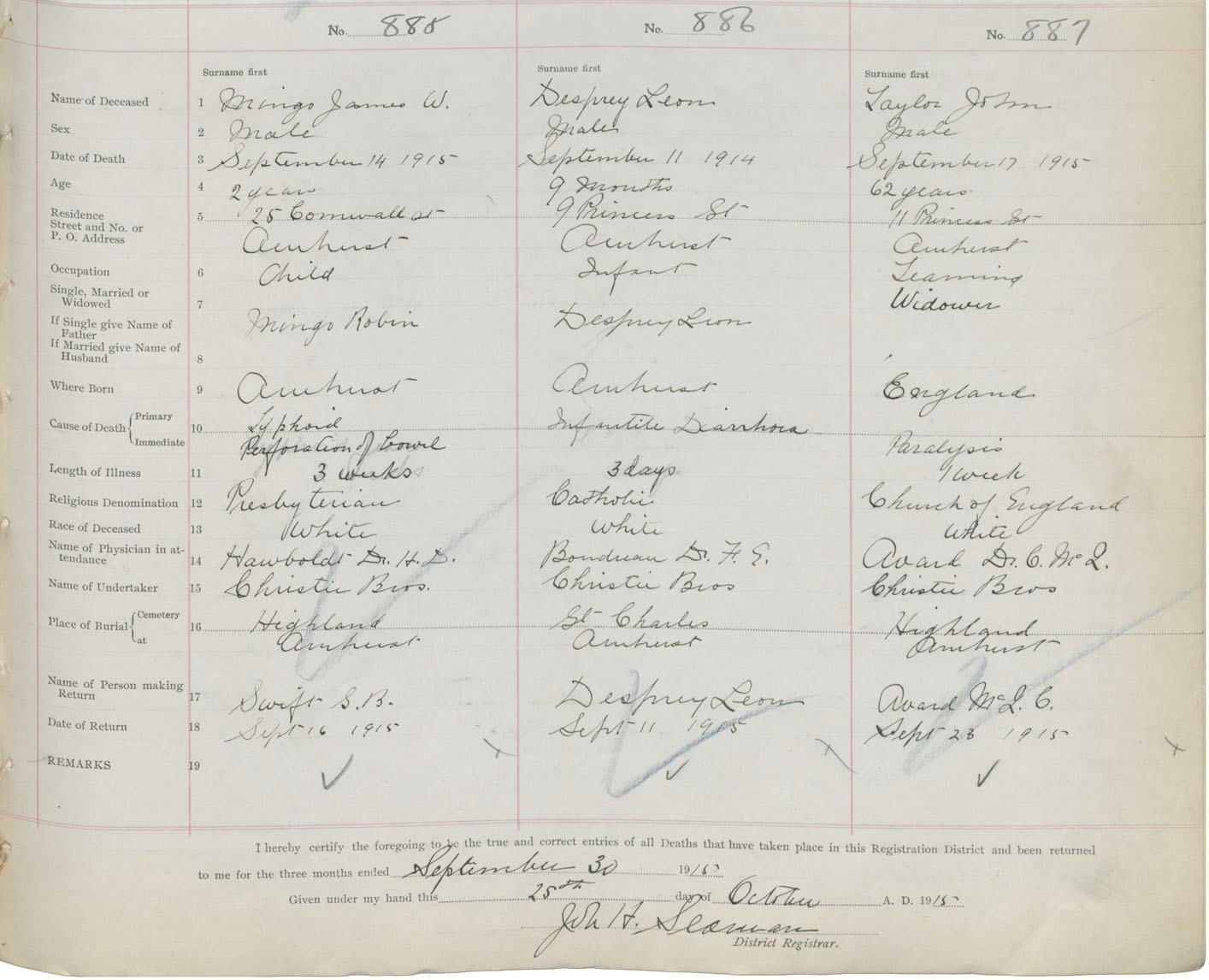 Male Death Registration: Year: 1915 book: 41 page: 223 number: 887