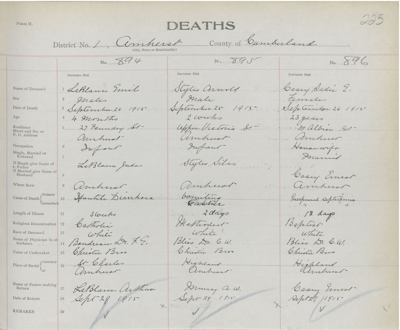 Female Death Registration: Year: 1915 book: 41 page: 225 number: 896