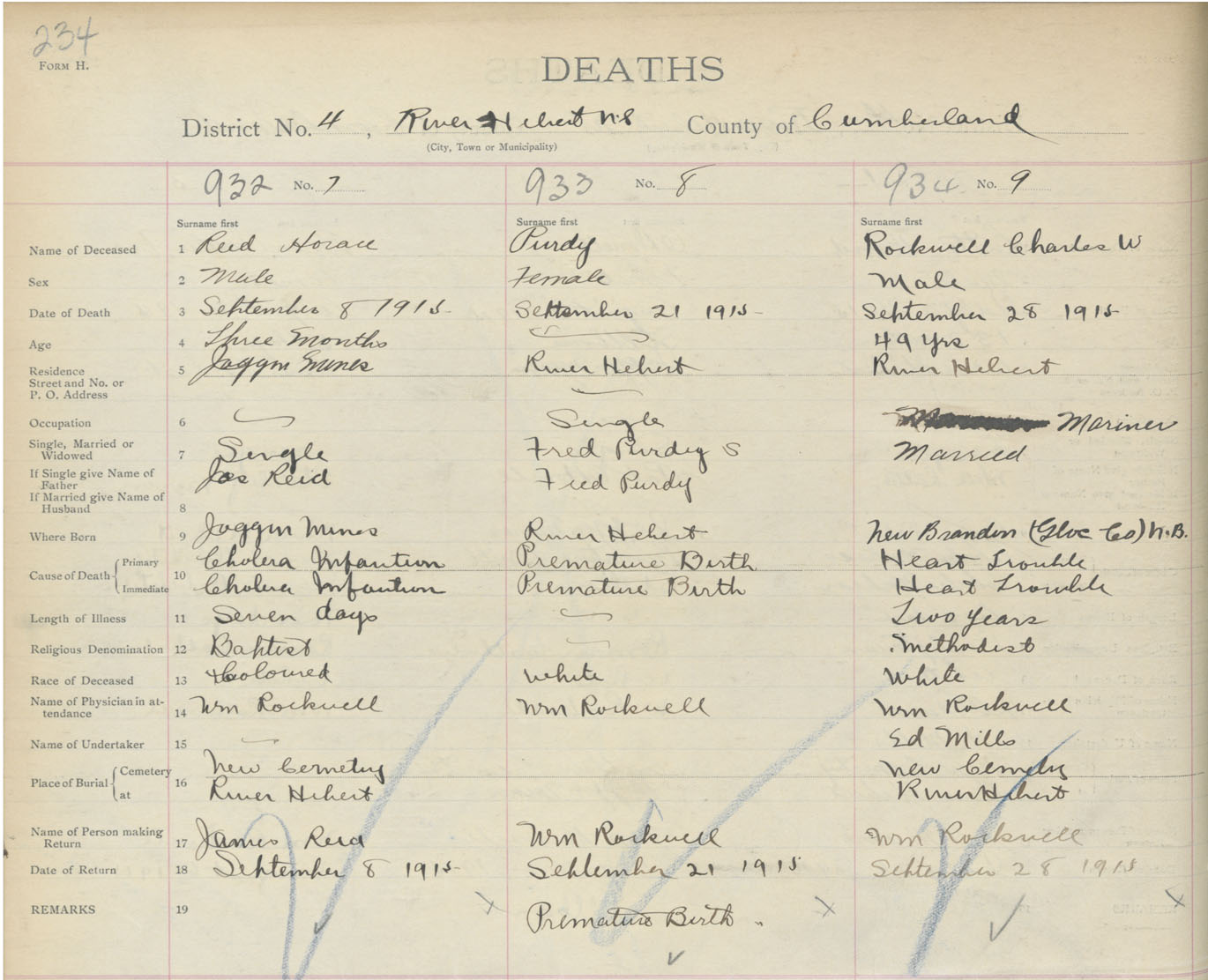 Male Death Registration: Year: 1915 book: 41 page: 234 number: 934
