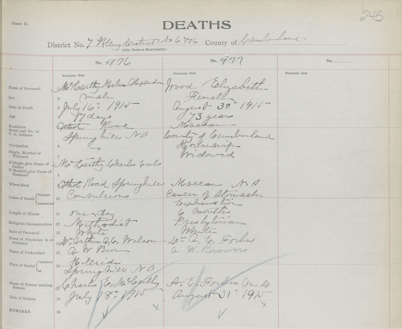 Female Death Registration: Year: 1915 book: 41 page: 245 number: 977