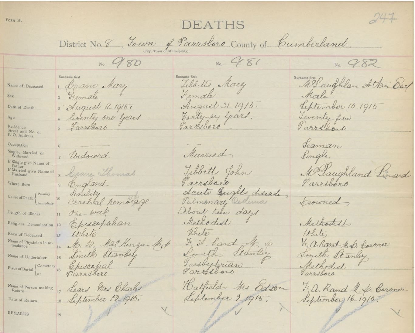 Male Death Registration: Year: 1915 book: 41 page: 247 number: 982