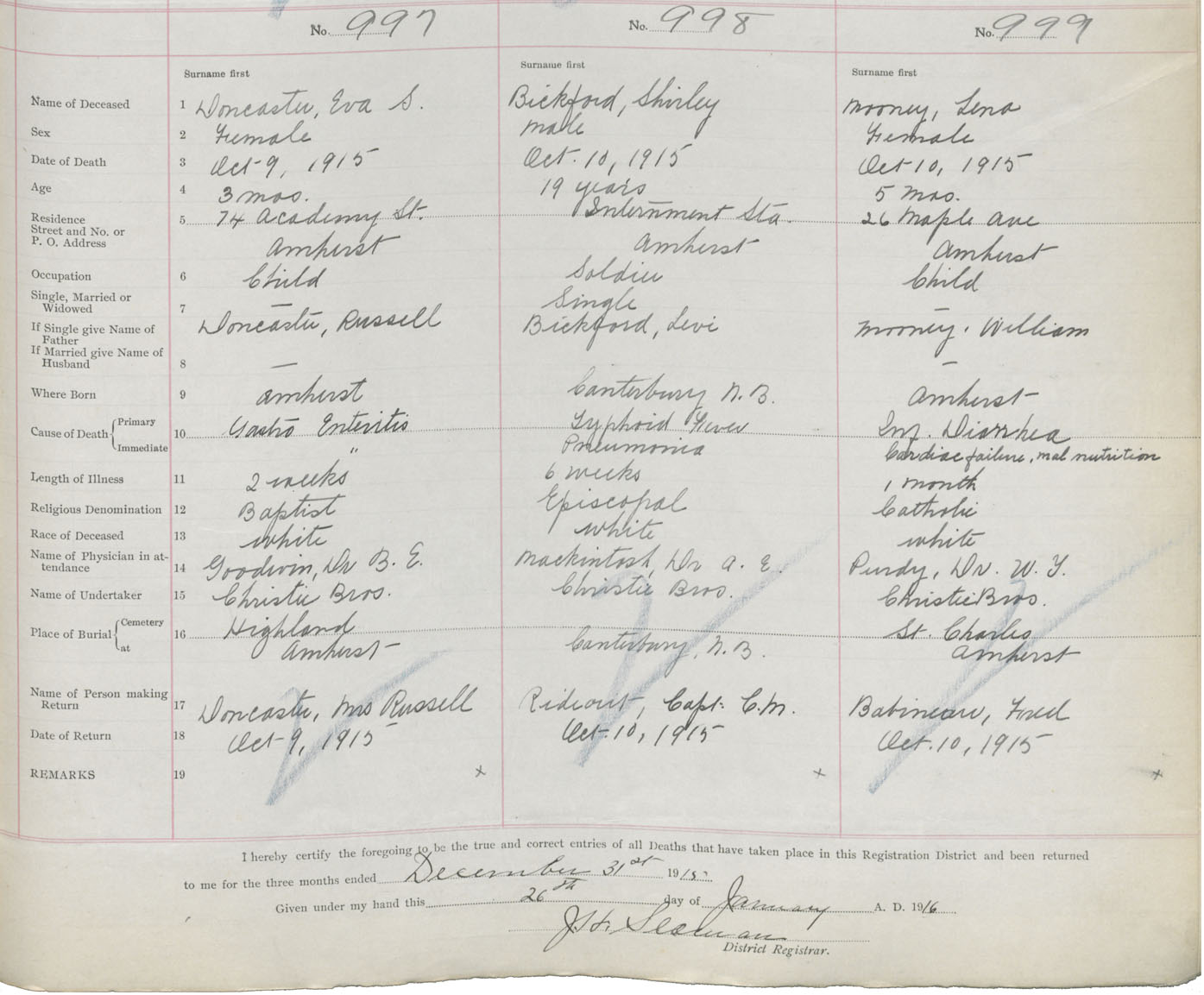 Female Death Registration: Year: 1915 book: 41 page: 251 number: 999