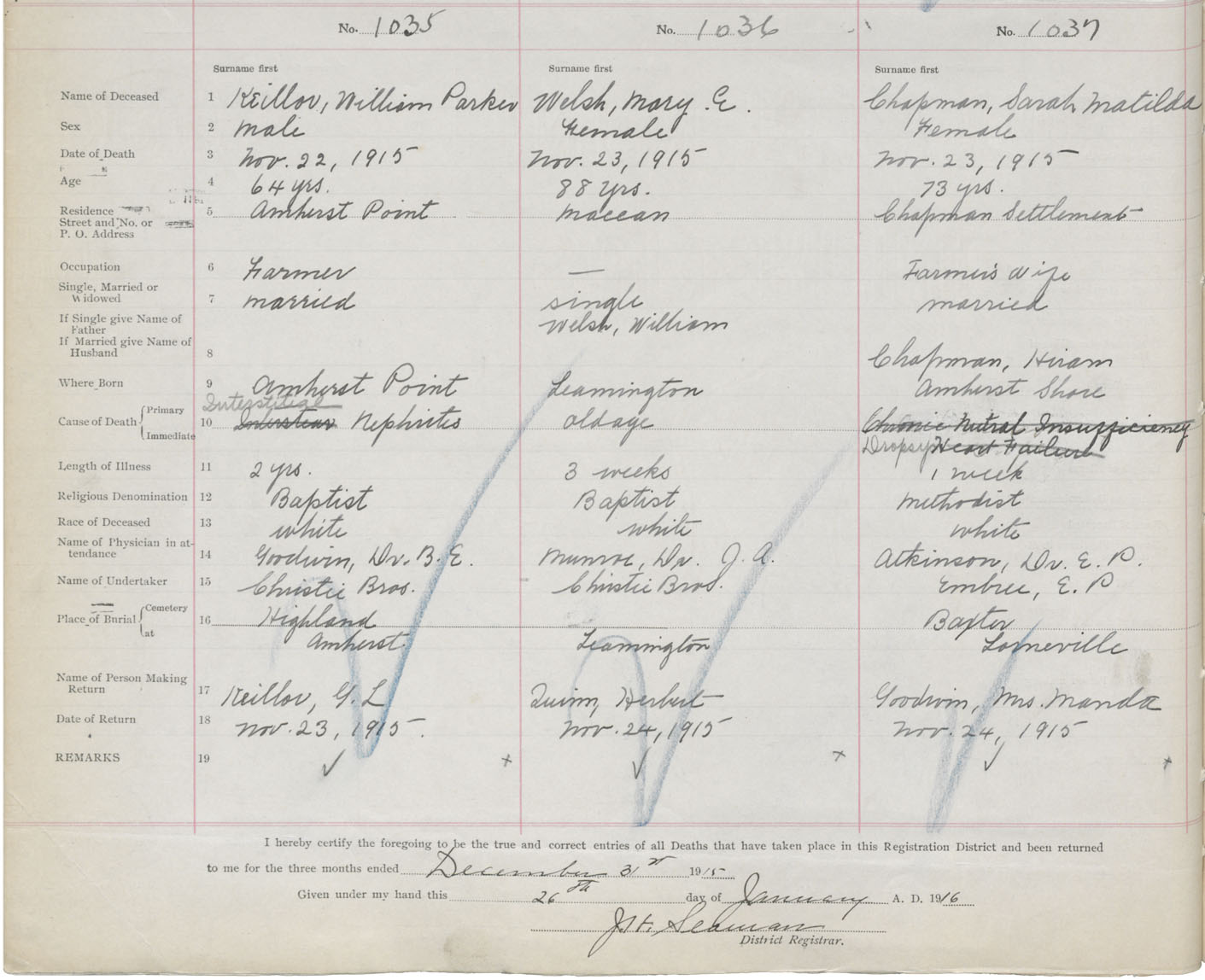 Male Death Registration: Year: 1915 book: 41 page: 258 number: 1035