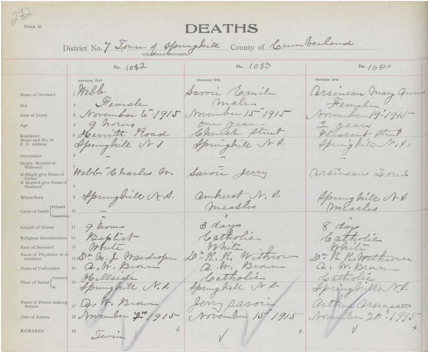 Female Death Registration: Year: 1915 book: 41 page: 272 number: 1082