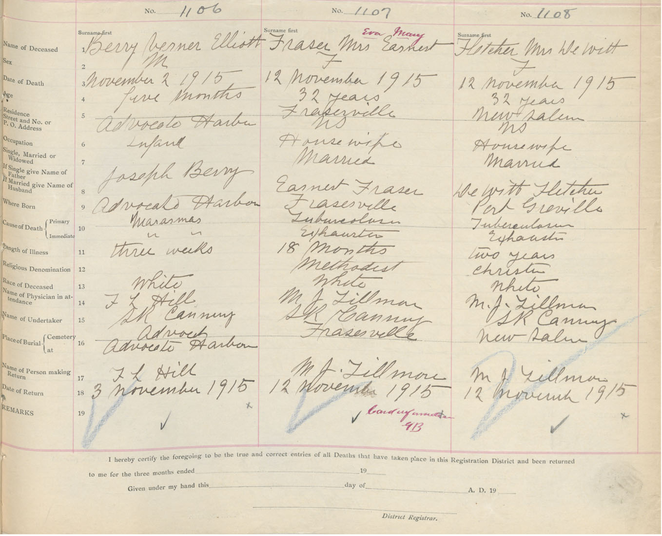 Male Death Registration: Year: 1915 book: 41 page: 279 number: 1106