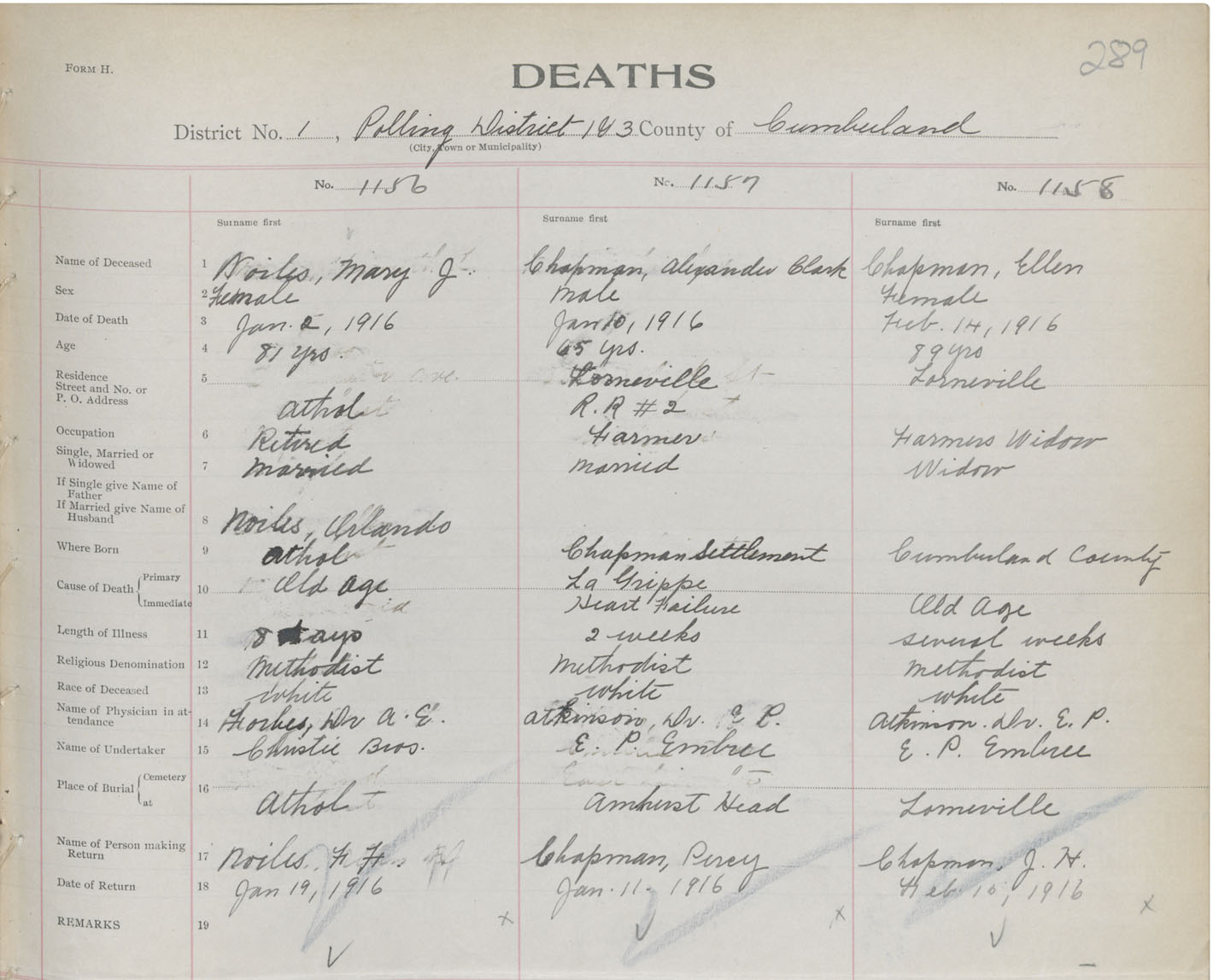 Female Death Registration: Year: 1916 book: 41 page: 289 number: 1158