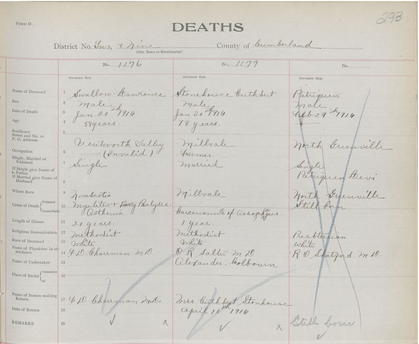 Male Death Registration: Year: 1916 book: 41 page: 293 number: 1177