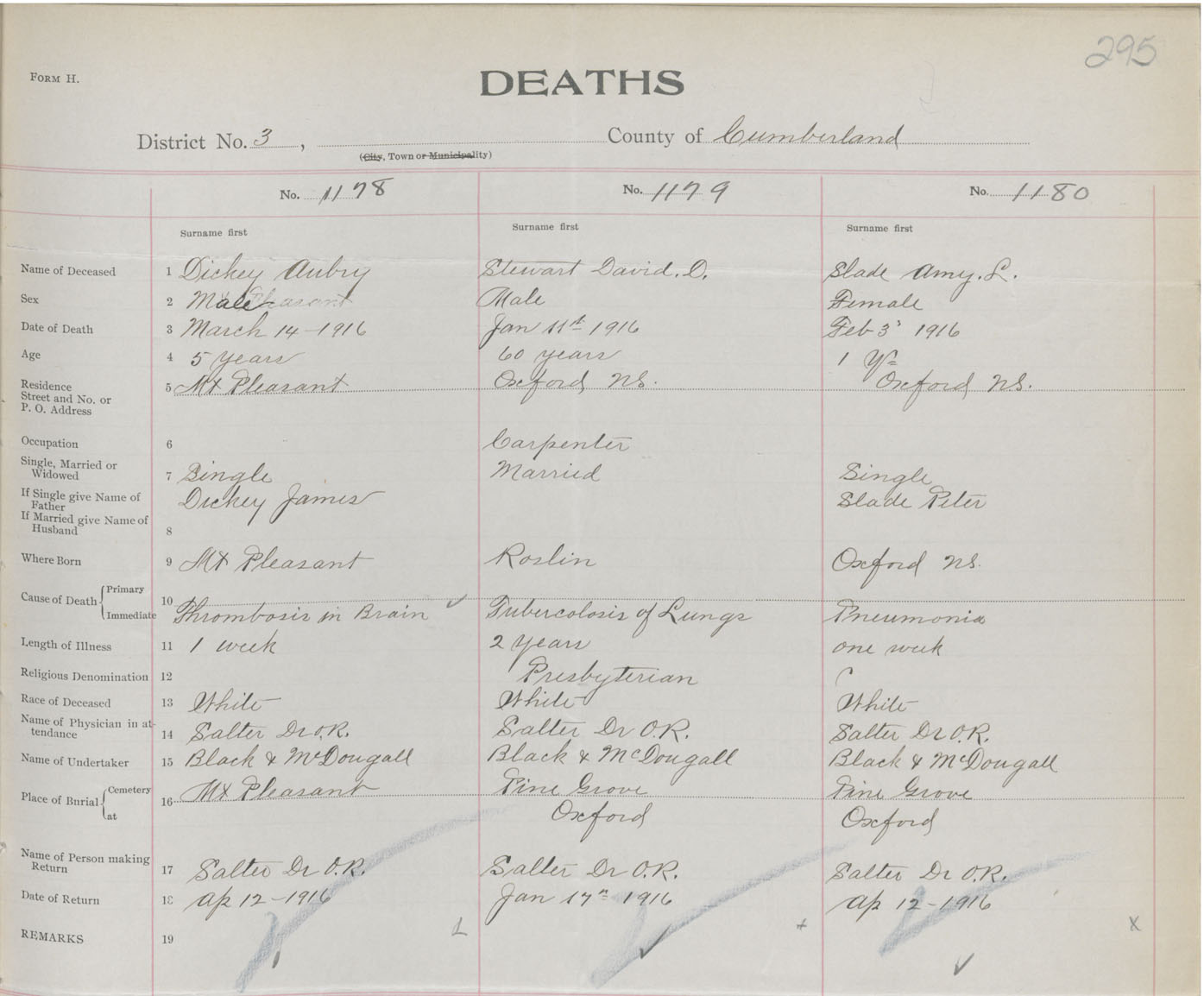 Female Death Registration: Year: 1916 book: 41 page: 295 number: 1180