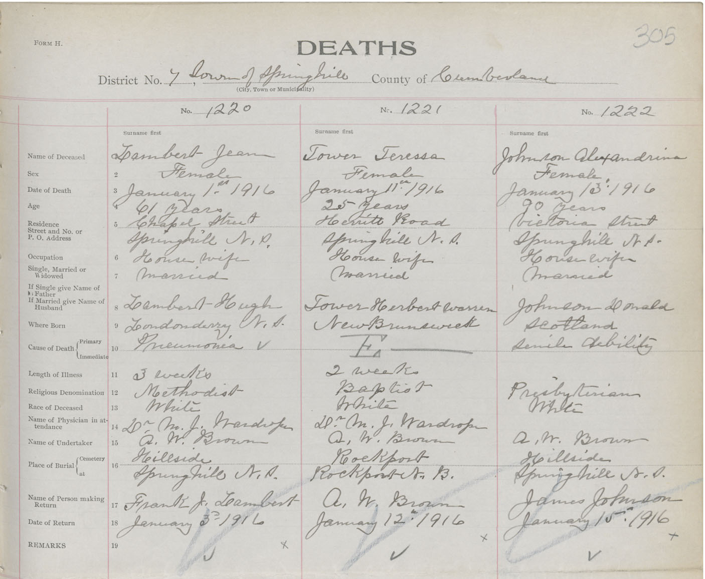 Female Death Registration: Year: 1916 book: 41 page: 305 number: 1222