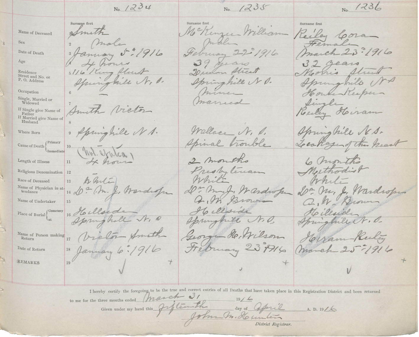Female Death Registration: Year: 1916 book: 41 page: 307 number: 1236