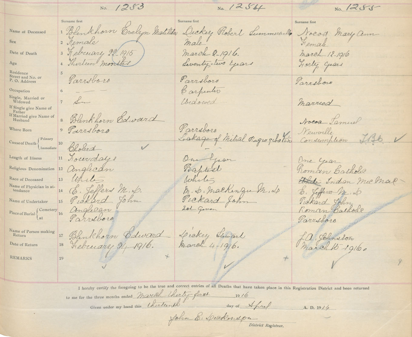 Female Death Registration: Year: 1915 book: 41 page: 313 number: 1253