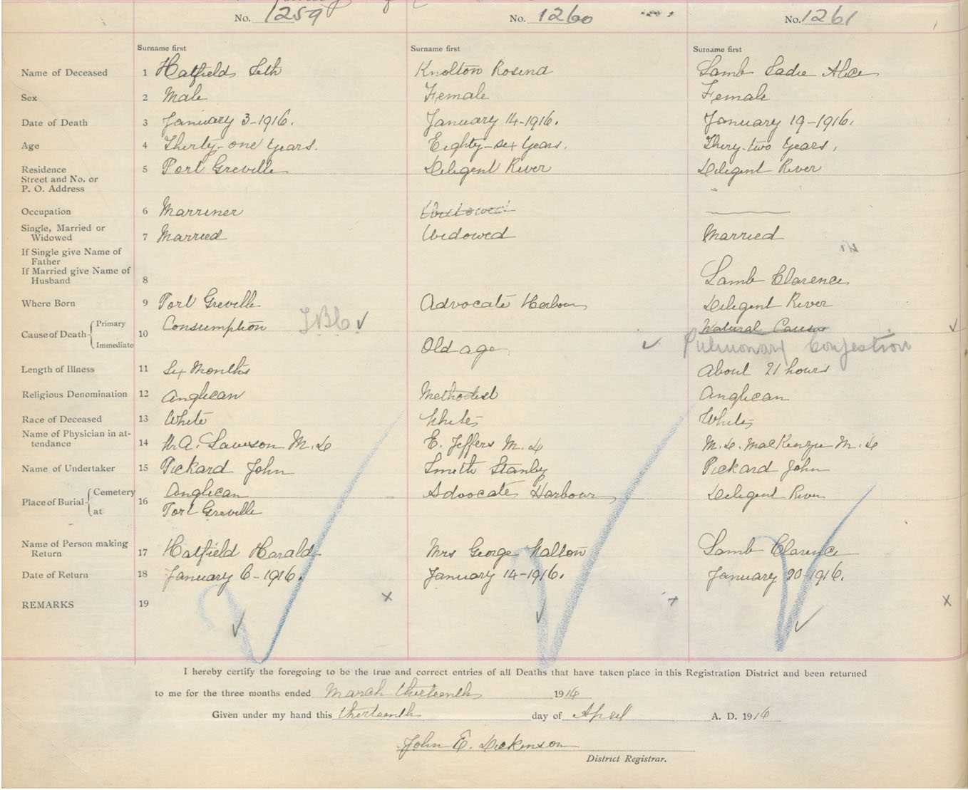 Male Death Registration: Year: 1916 book: 41 page: 314 number: 1259