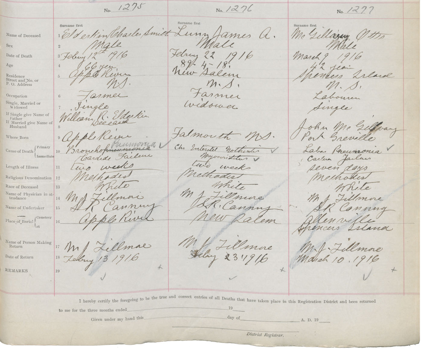 Male Death Registration: Year: 1916 book: 41 page: 317 number: 1275