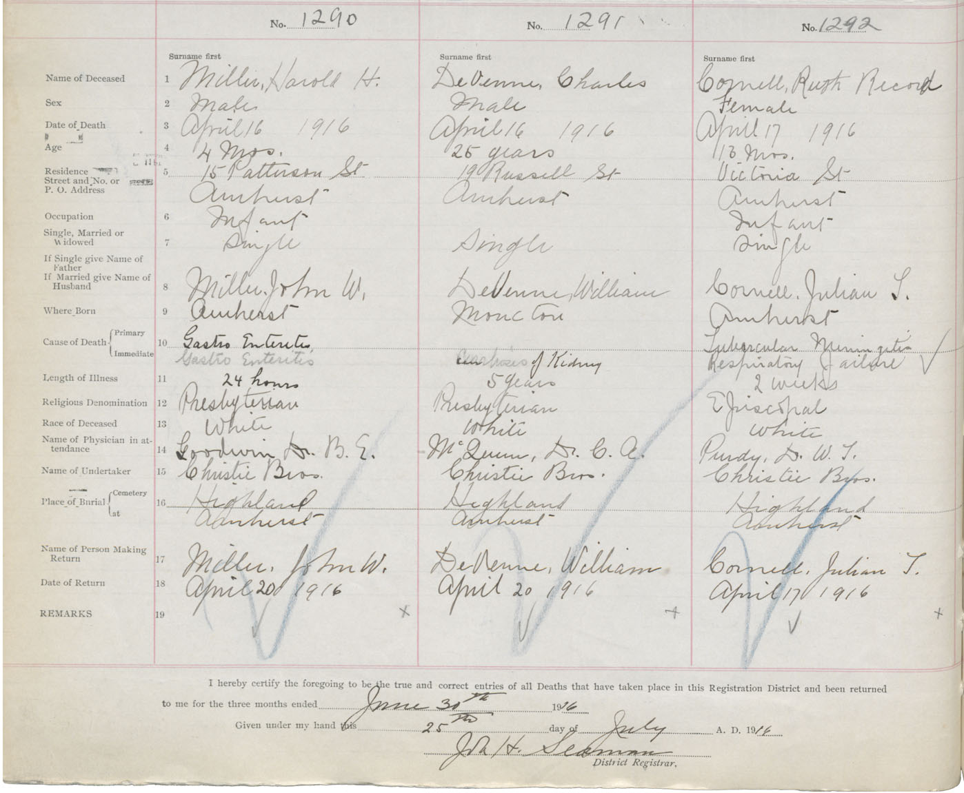 Male Death Registration: Year: 1916 book: 41 page: 320 number: 1290