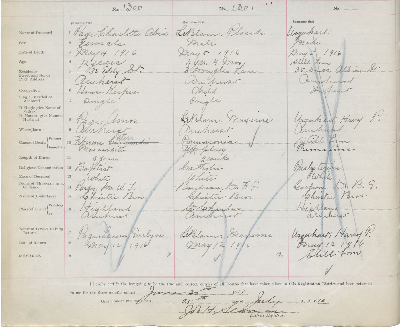 Female Death Registration: Year: 1916 book: 41 page: 322 number: 1300