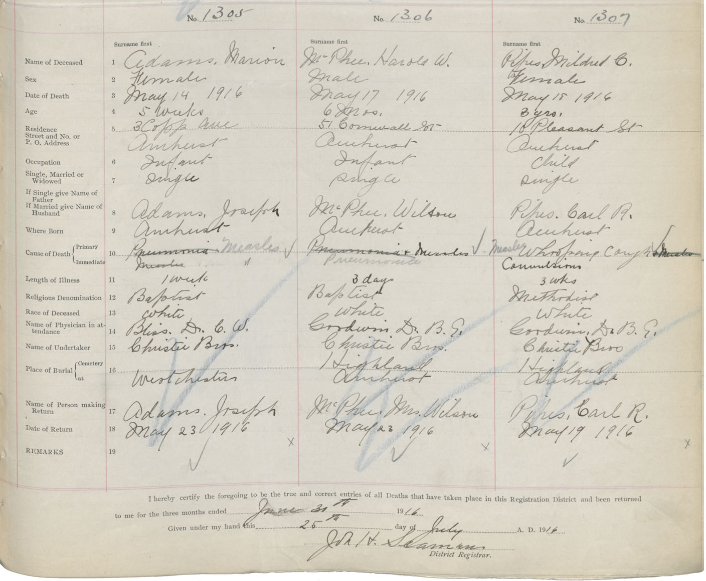 Female Death Registration: Year: 1916 book: 41 page: 323 number: 1305