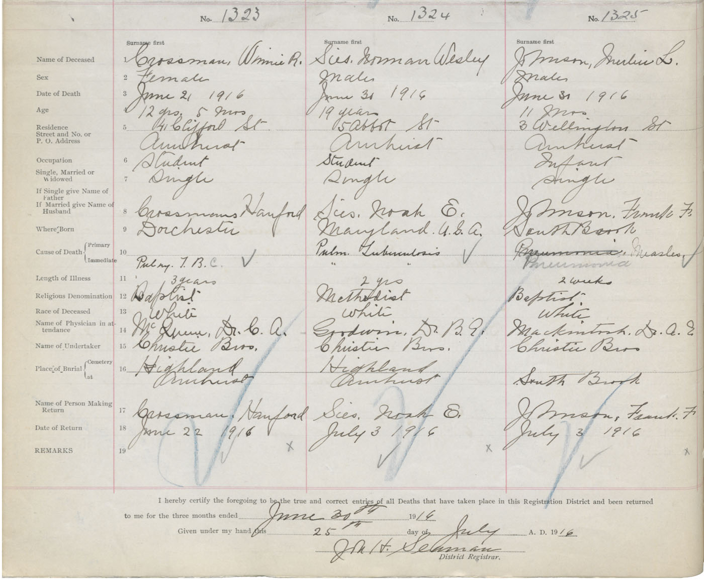 Female Death Registration: Year: 1916 book: 41 page: 326 number: 1323