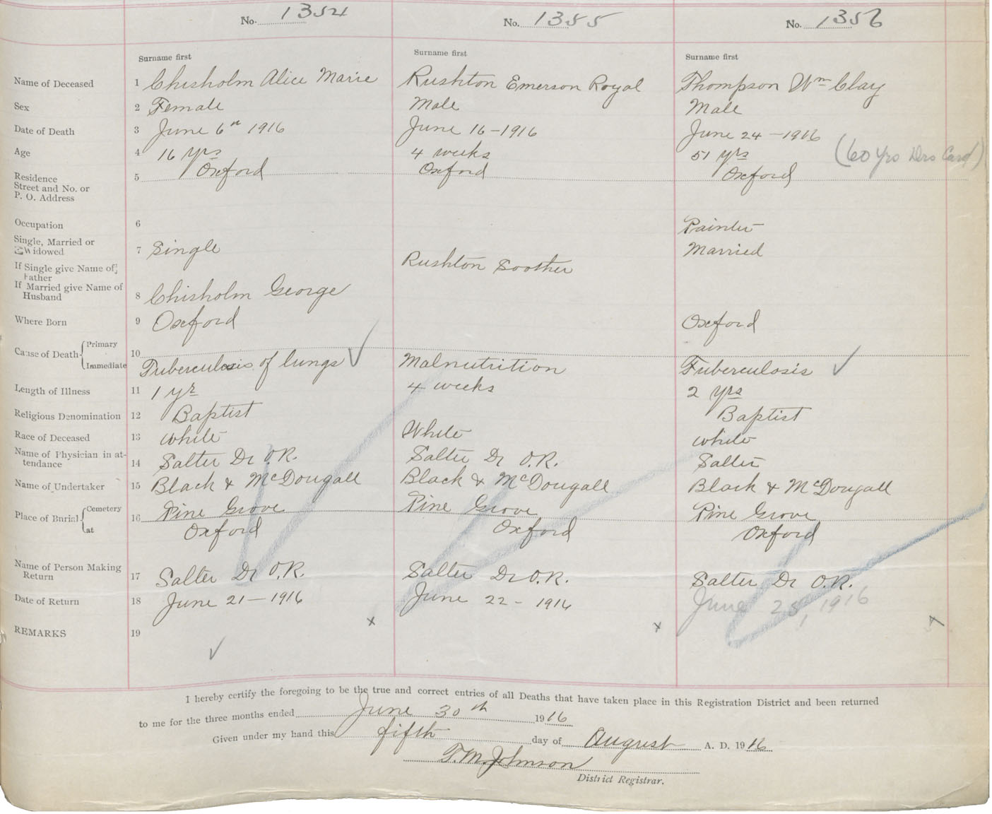 Female Death Registration: Year: 1916 book: 41 page: 333 number: 1354