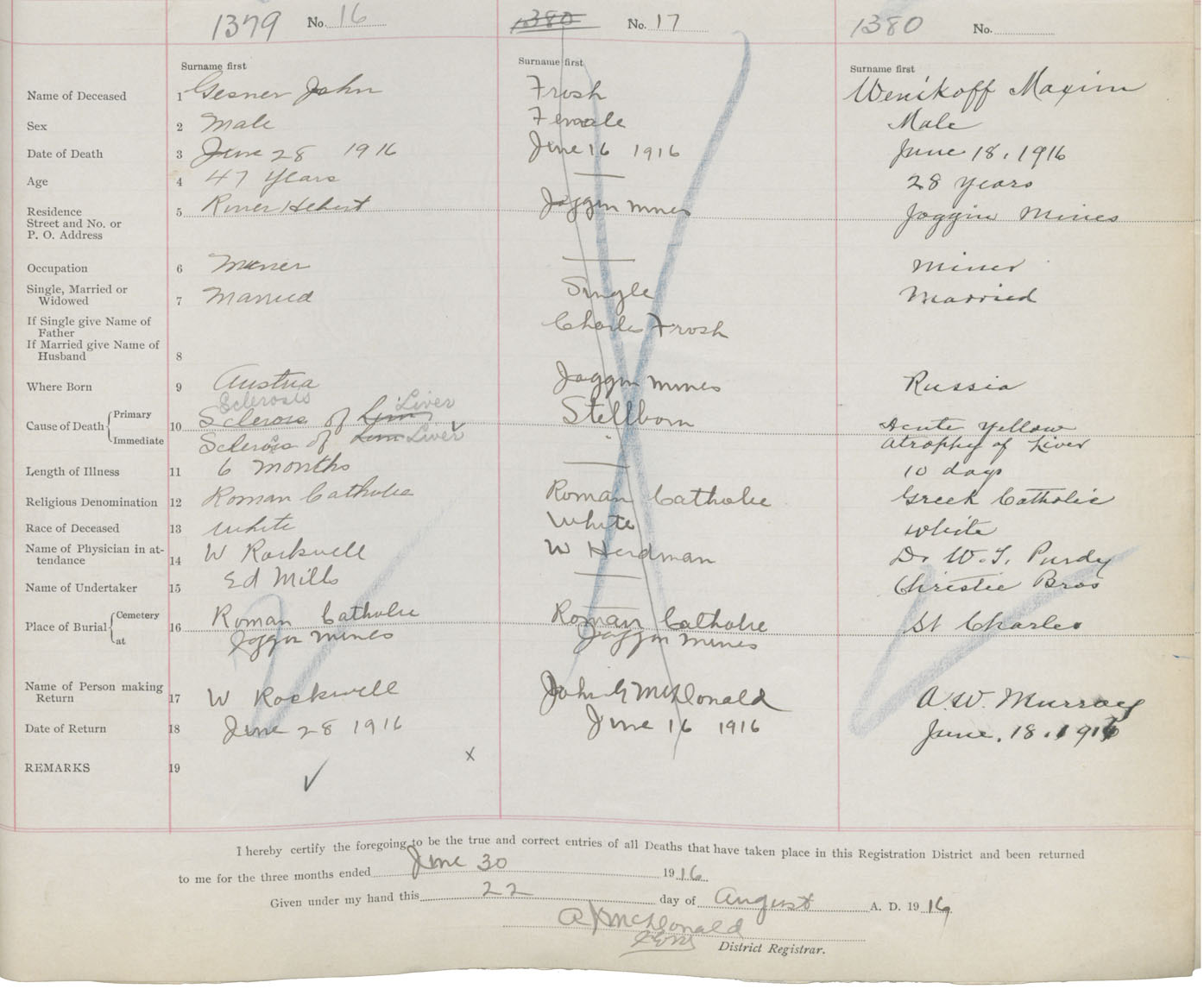 Male Death Registration: Year: 1916 book: 41 page: 339 number: 1379