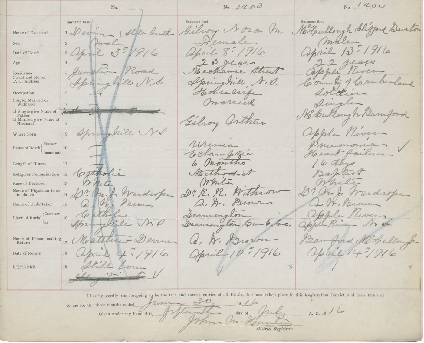 Death Registration: Year: 1916 book: 41 page: 347 number: 1403