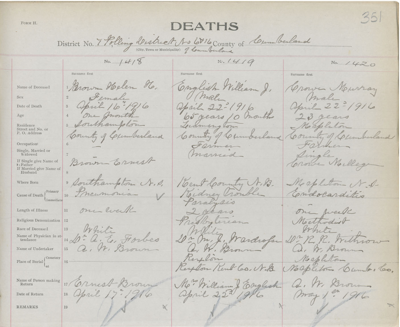Death Registration: Year: 1916 book: 41 page: 351 number: 1418