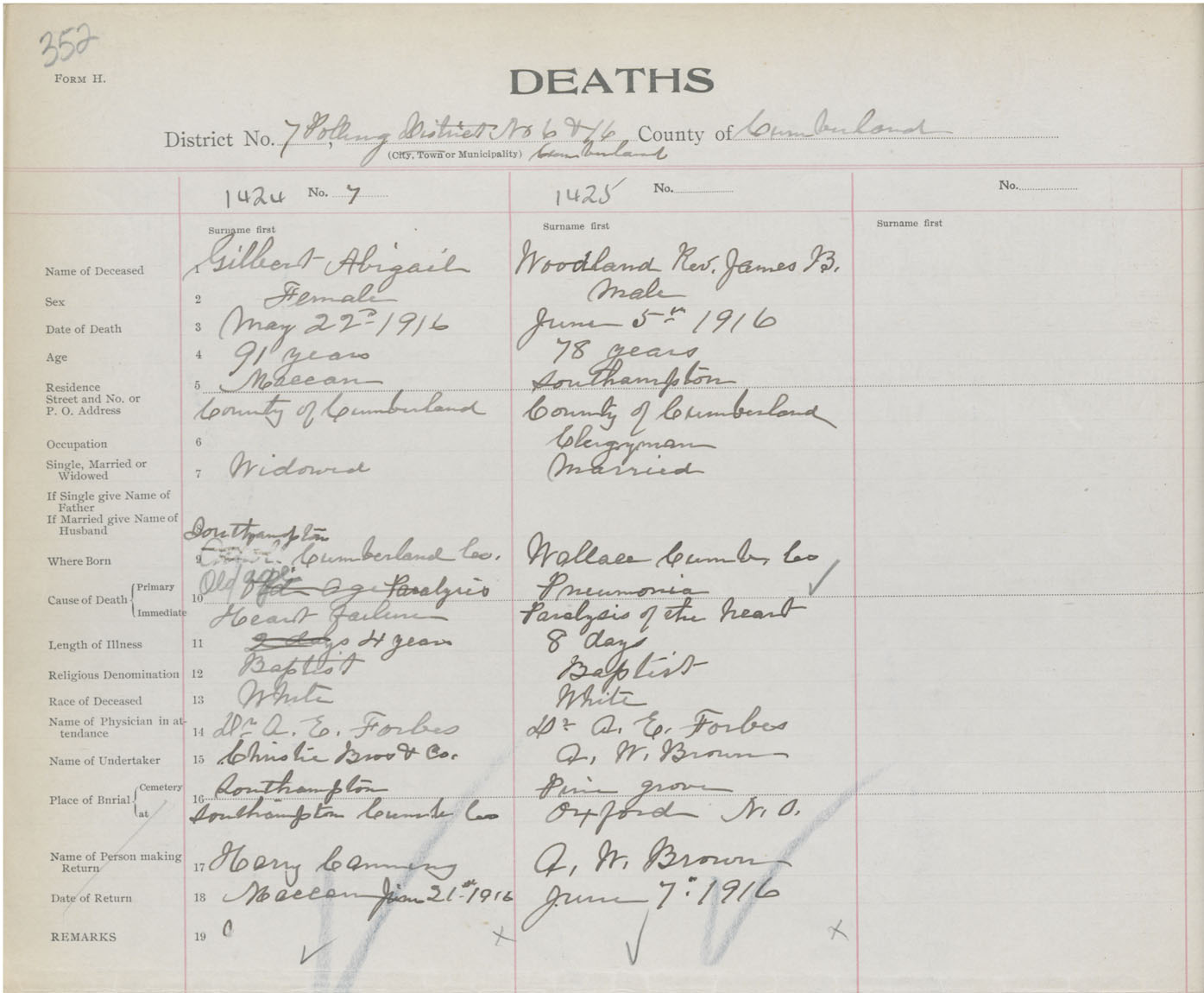 Death Registration: Year: 1916 book: 41 page: 352 number: 1424