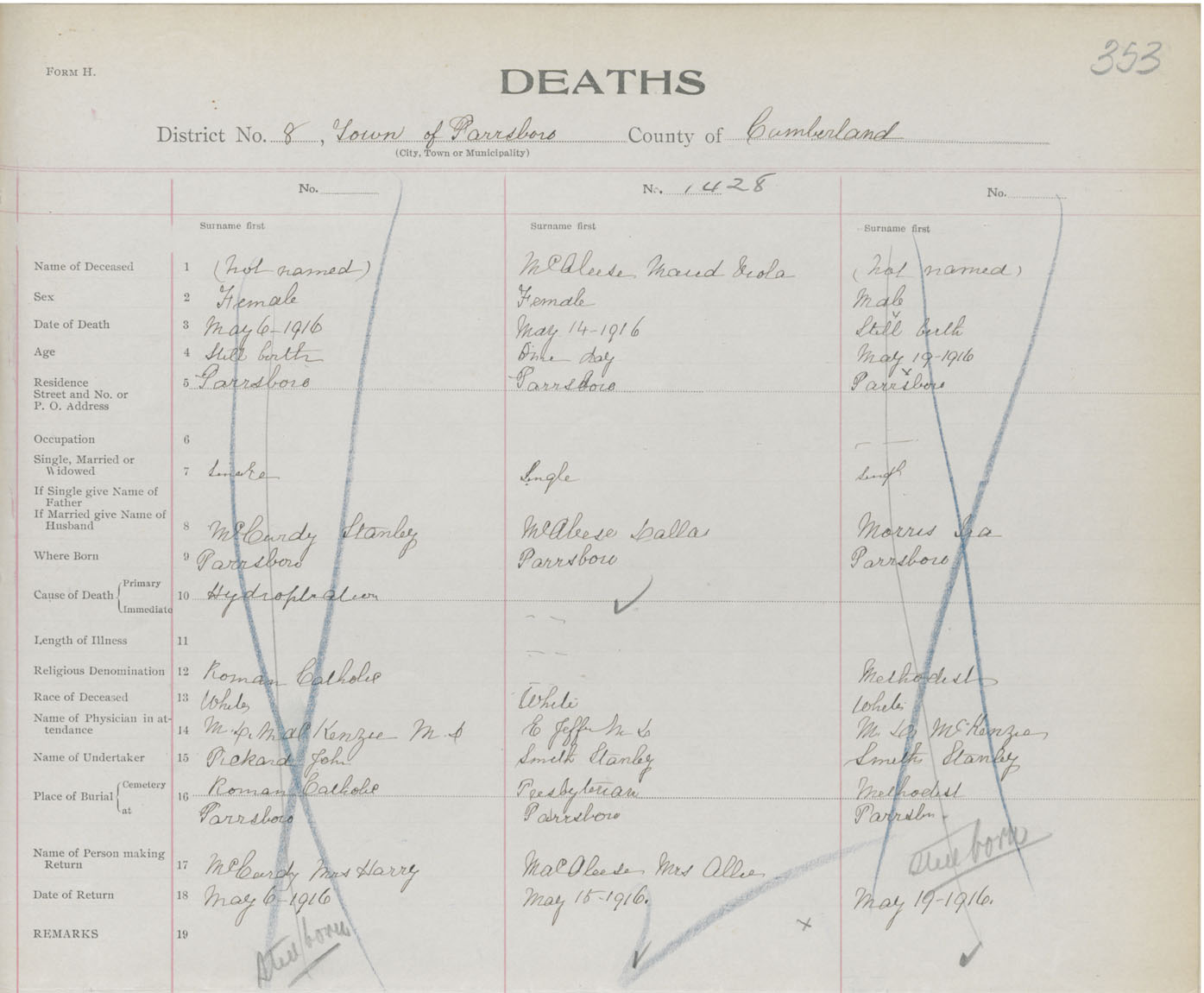 Death Registration: Year: 1916 book: 41 page: 353 number: 1428