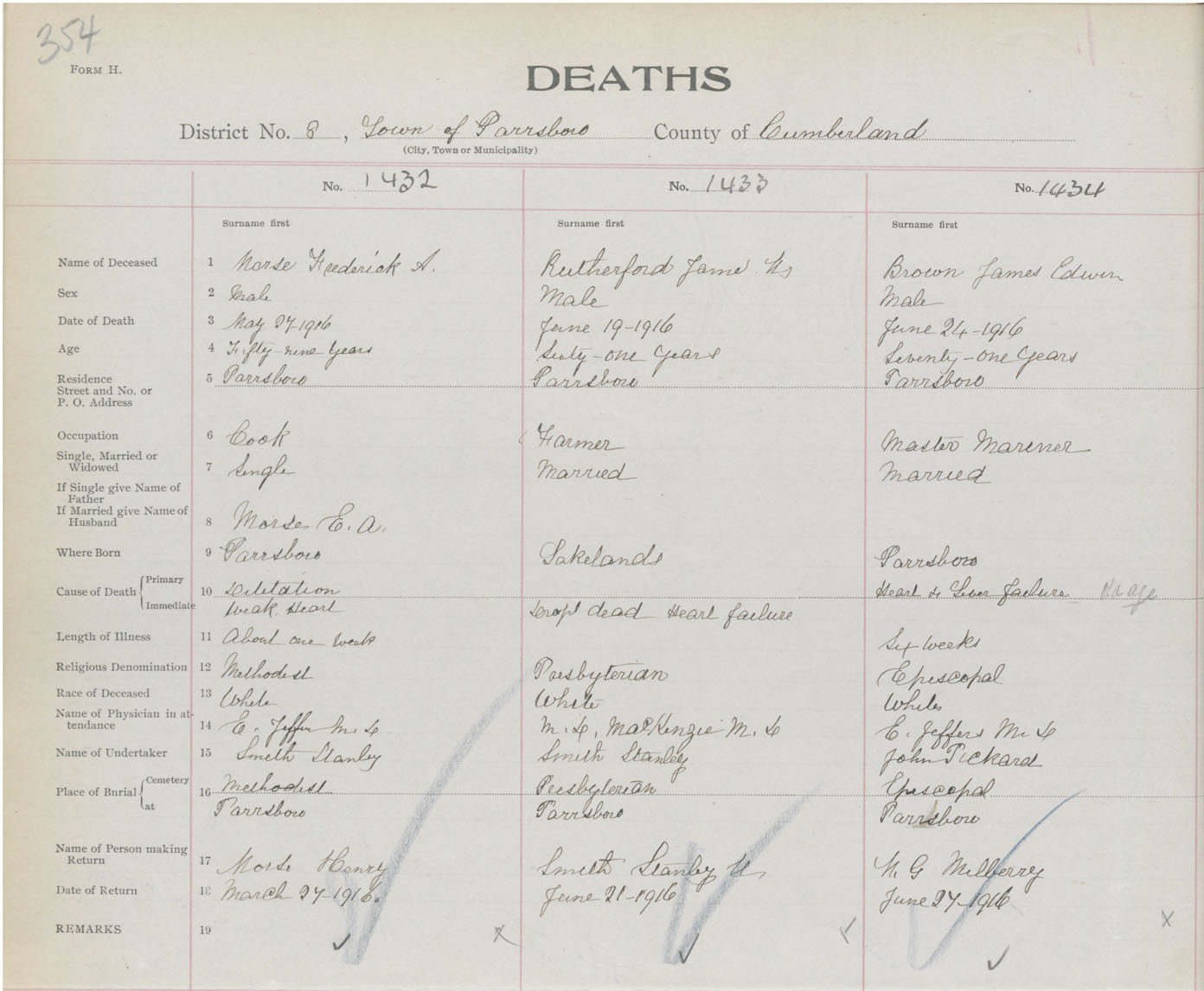 Death Registration: Year: 1916 book: 41 page: 354 number: 1432