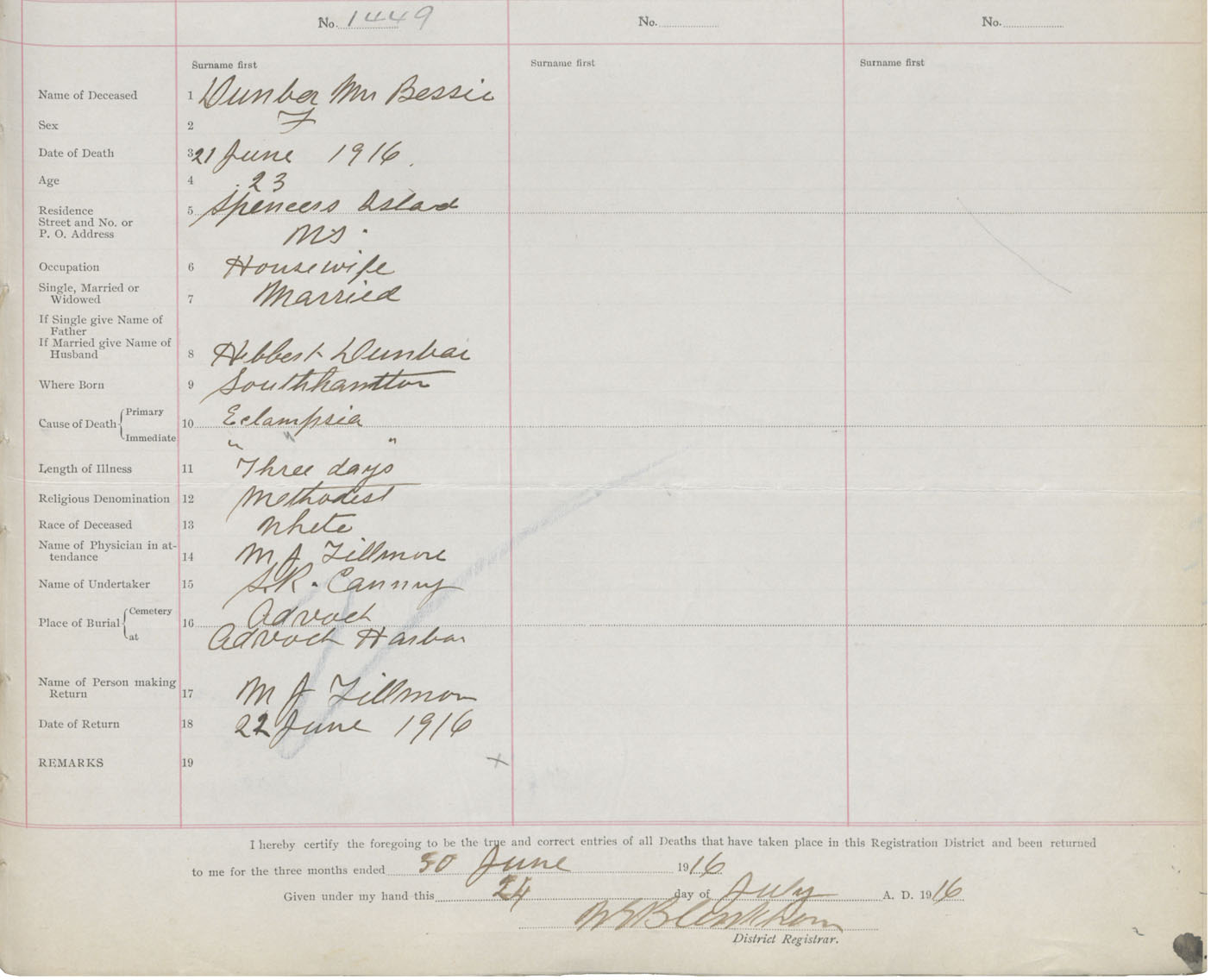Death Registration: Year: 1916 book: 41 page: 357 number: 1449