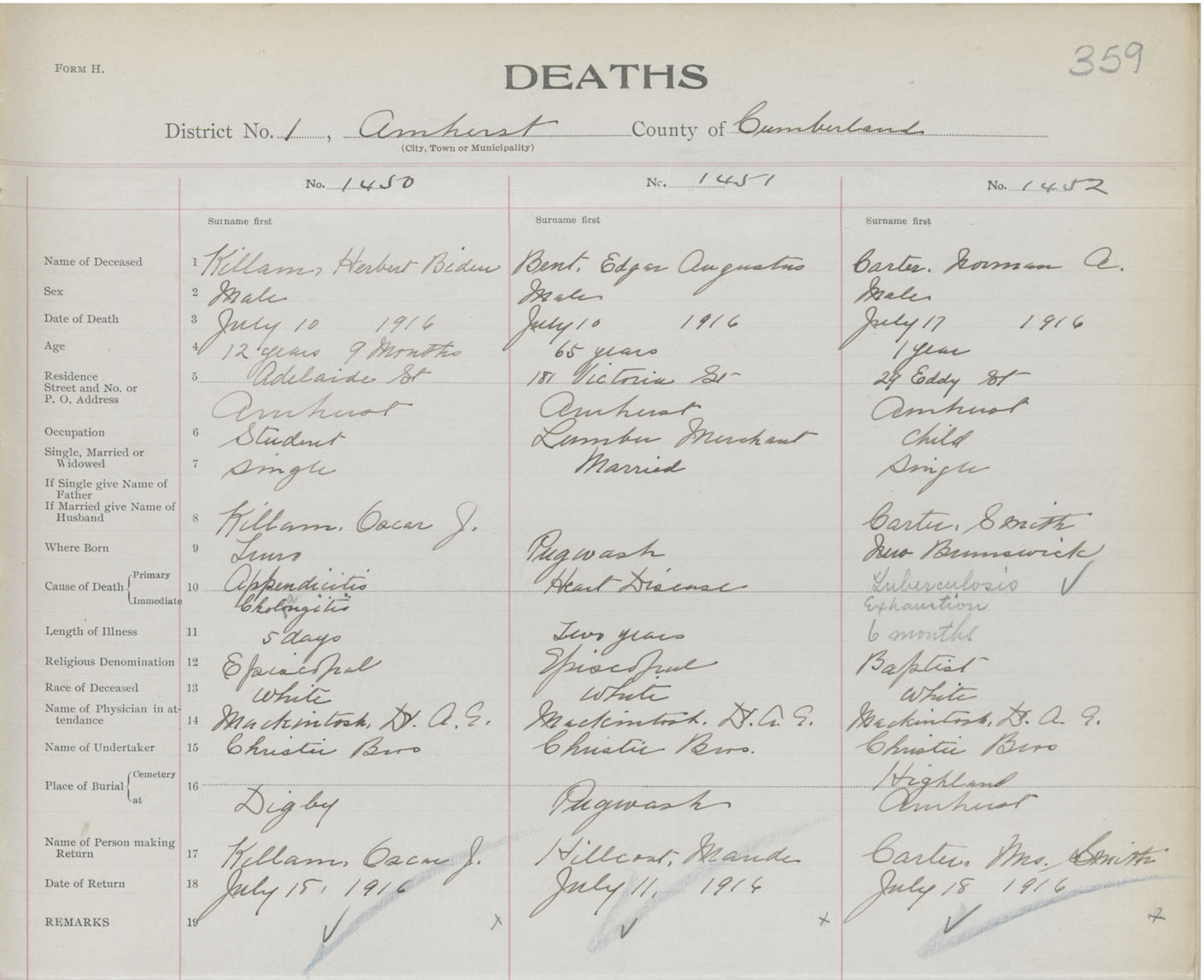 Death Registration: Year: 1916 book: 41 page: 359 number: 1450