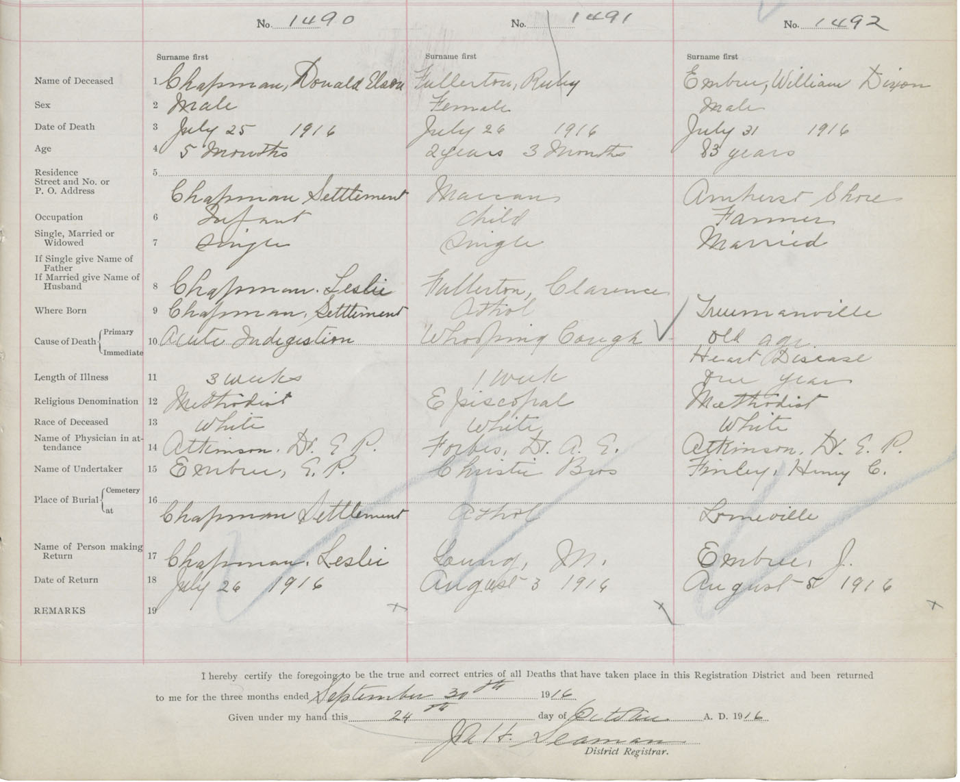 Death Registration: Year: 1916 book: 41 page: 367 number: 1492
