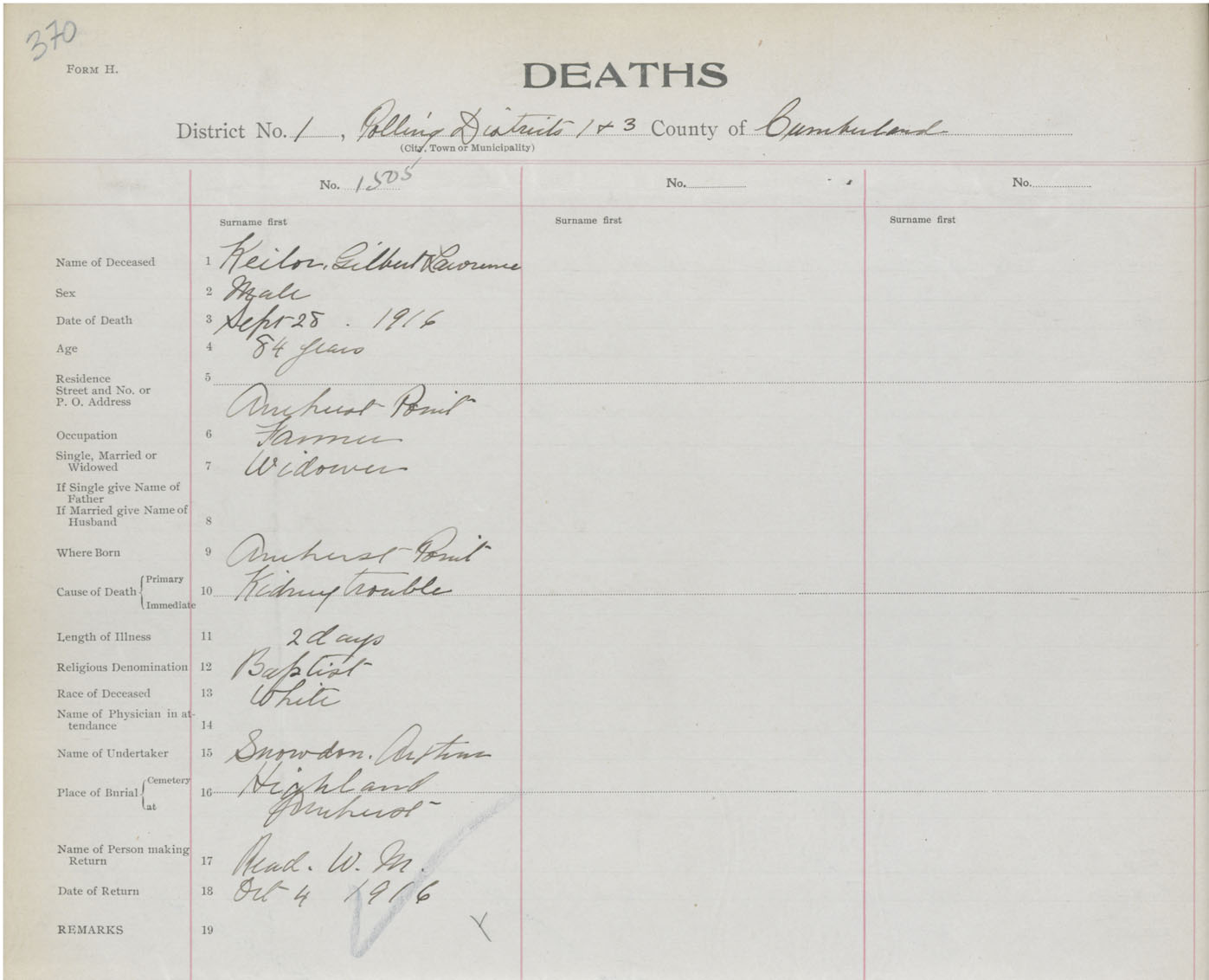 Death Registration: Year: 1916 book: 41 page: 370 number: 1505