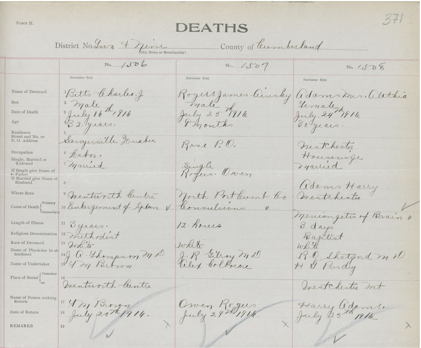 Death Registration: Year: 1916 book: 41 page: 371 number: 1508
