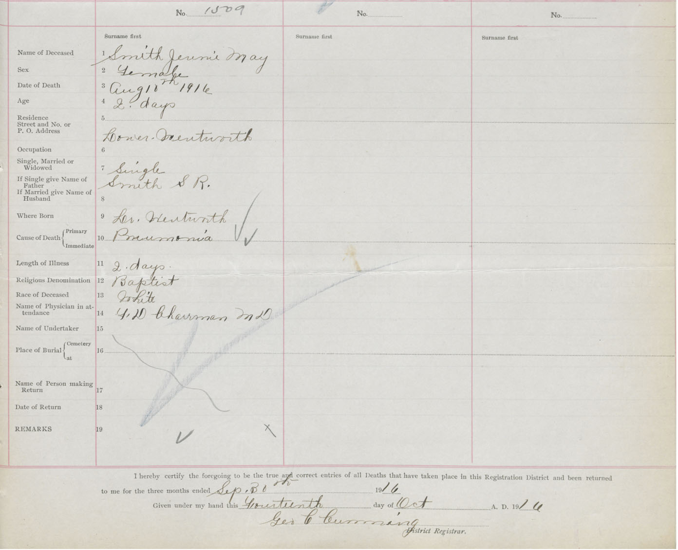 Death Registration: Year: 1916 book: 41 page: 371 number: 1509