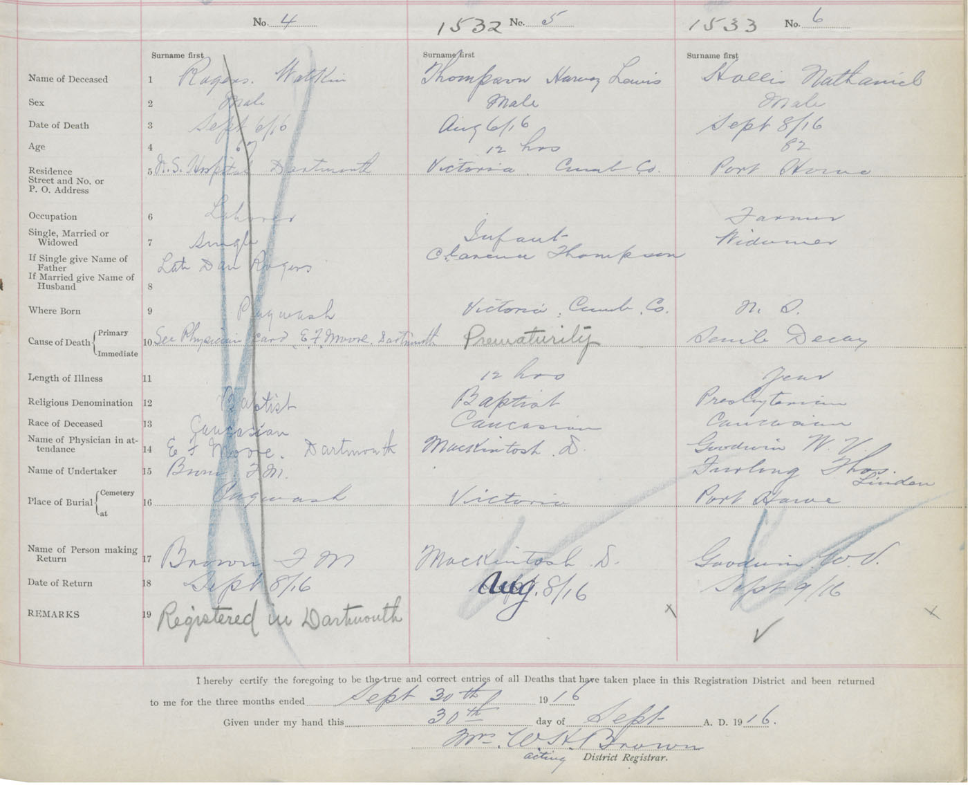 Death Registration: Year: 1916 book: 41 page: 377 number: 1533