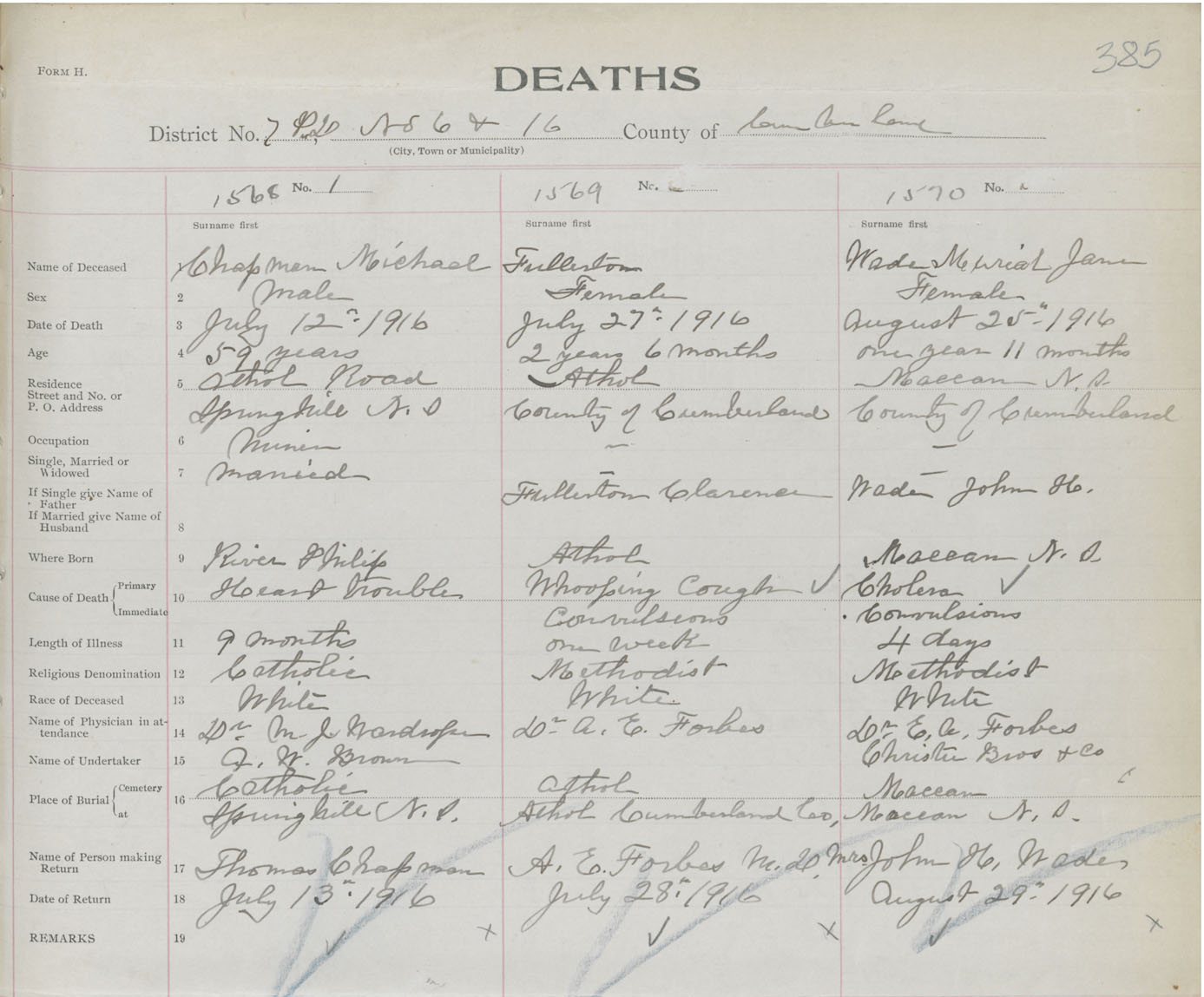 Death Registration: Year: 1916 book: 41 page: 385 number: 1570