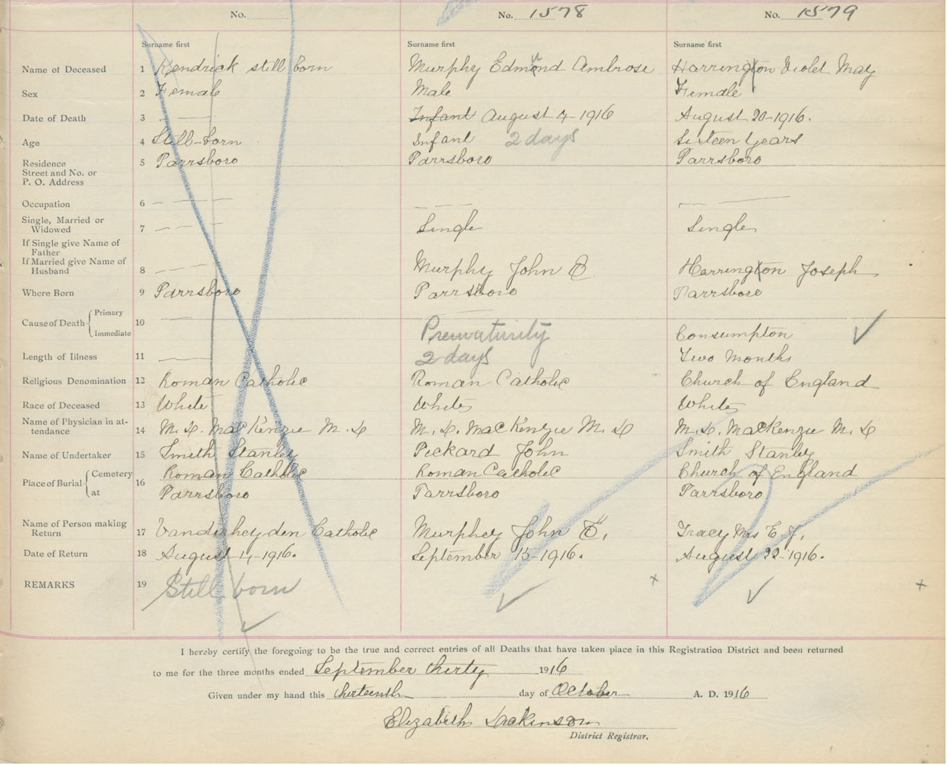 Death Registration: Year: 1916 book: 41 page: 387 number: 1579
