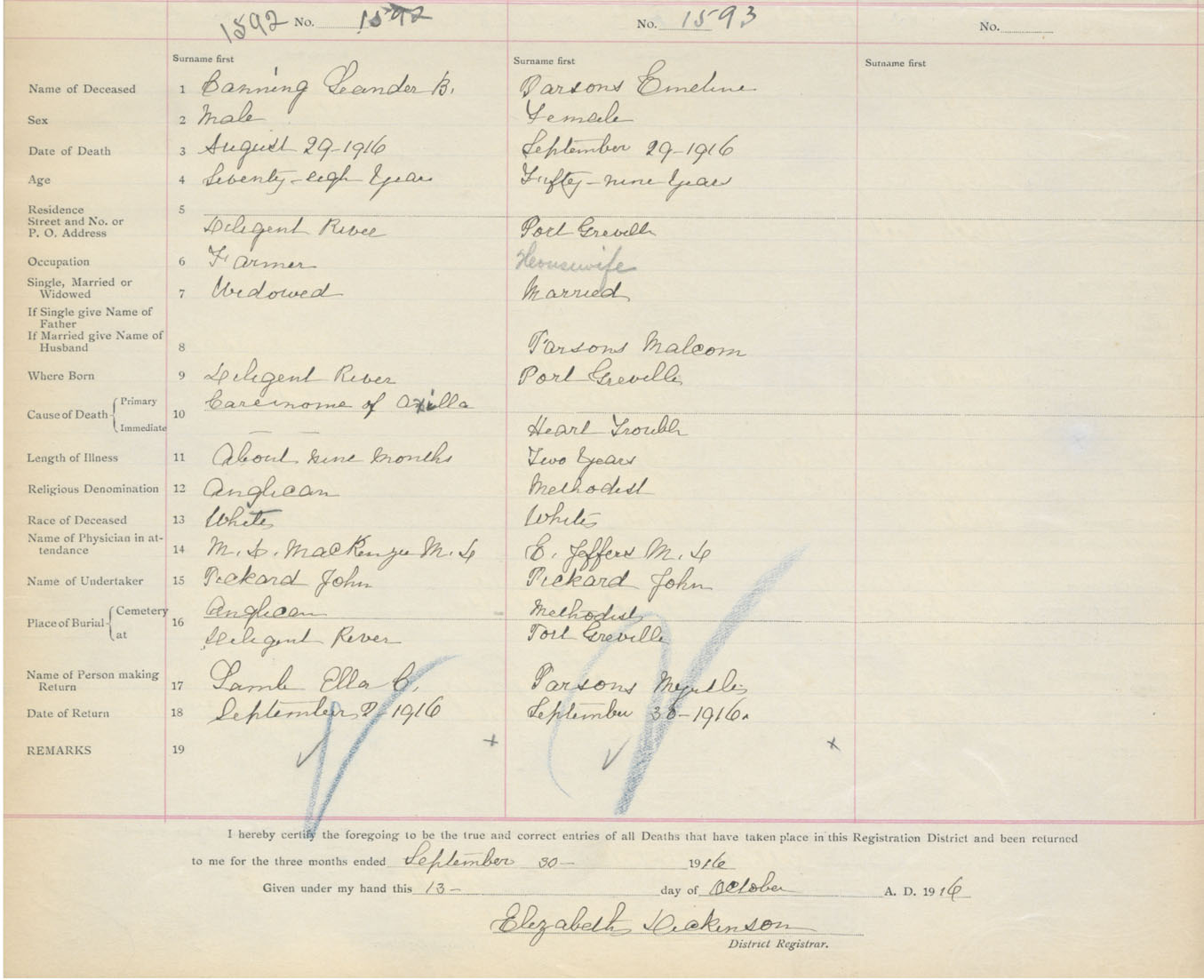 Death Registration: Year: 1916 book: 41 page: 390 number: 1593