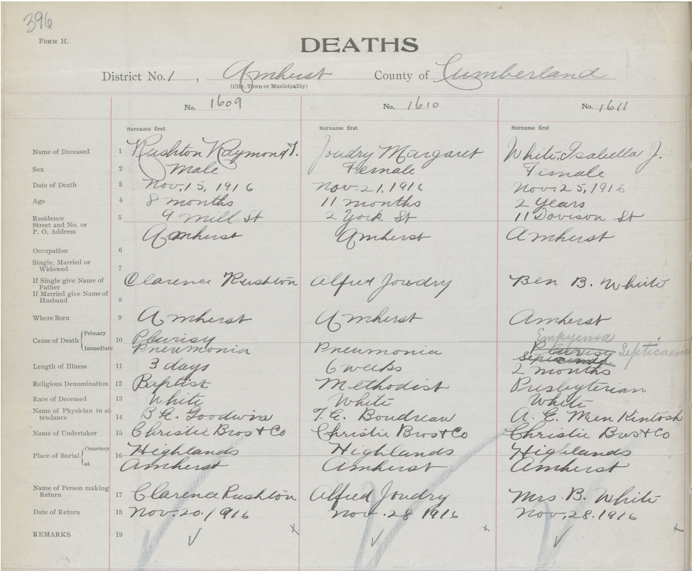 Death Registration: Year: 1916 book: 41 page: 396 number: 1611