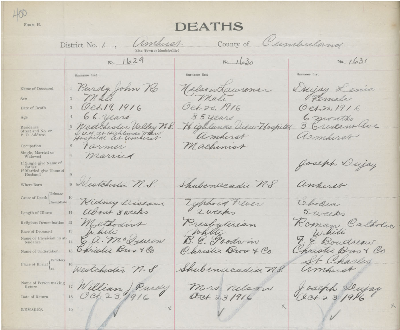 Death Registration: Year: 1916 book: 41 page: 400 number: 1631