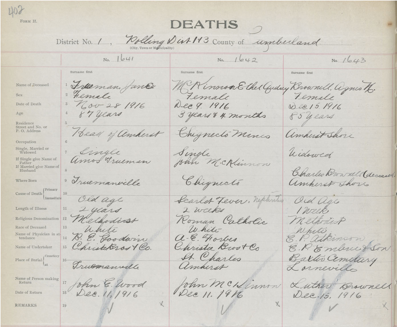 Death Registration: Year: 1916 book: 41 page: 402 number: 1643
