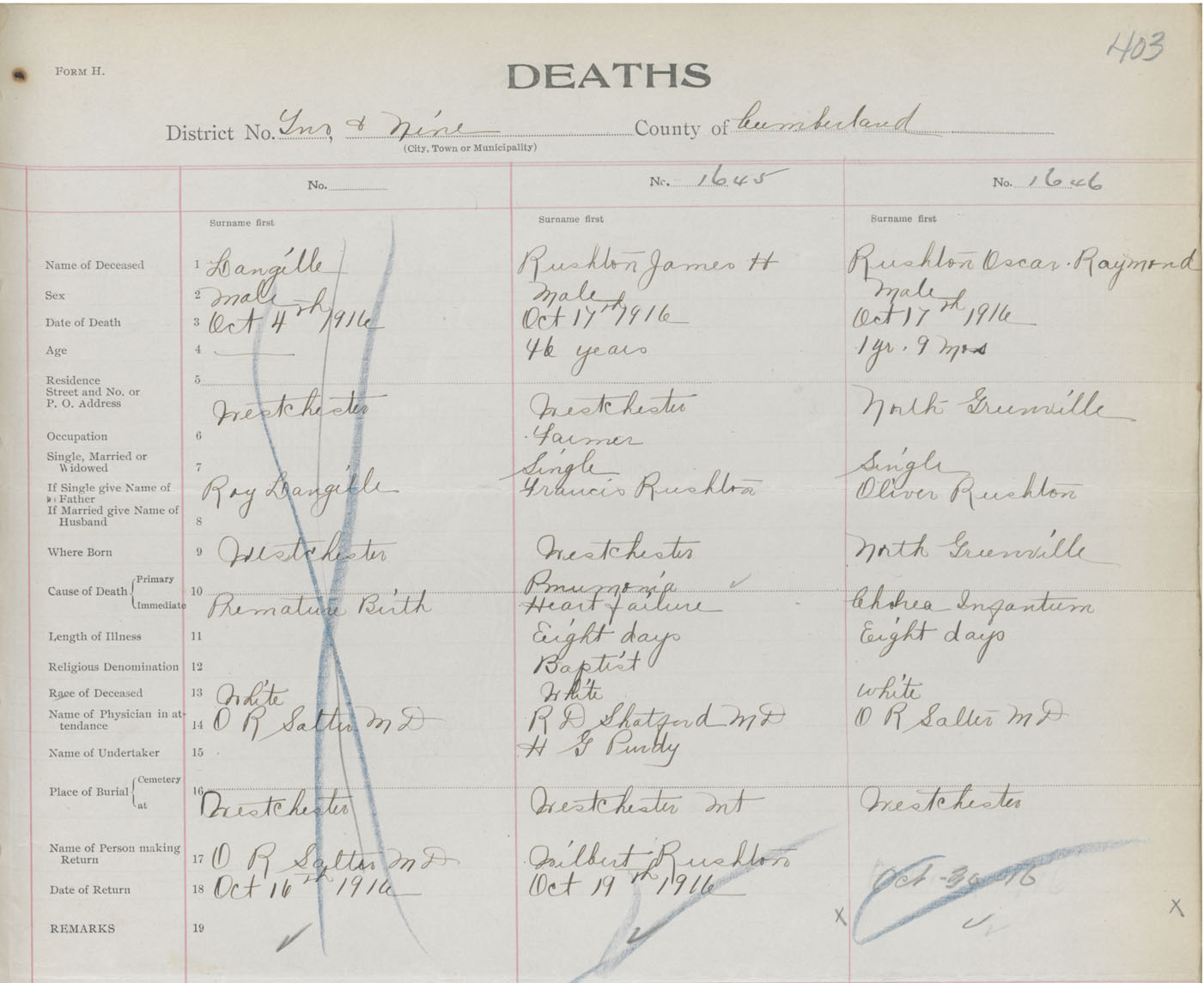 Death Registration: Year: 1916 book: 41 page: 403 number: 1646