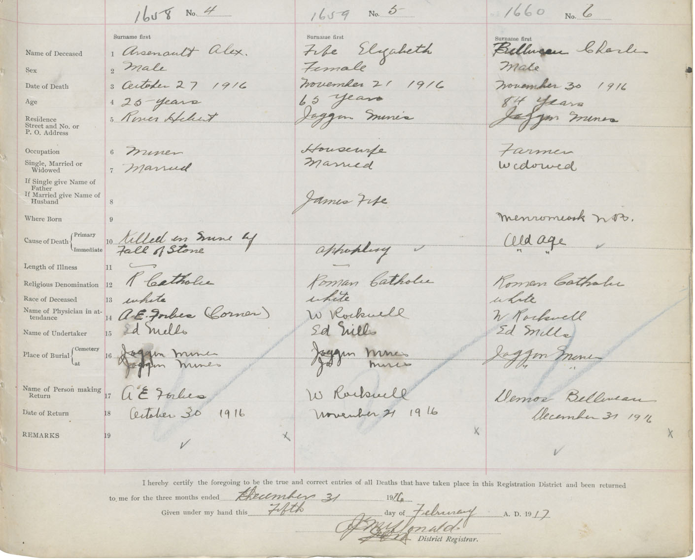 Death Registration: Year: 1916 book: 41 page: 407 number: 1660