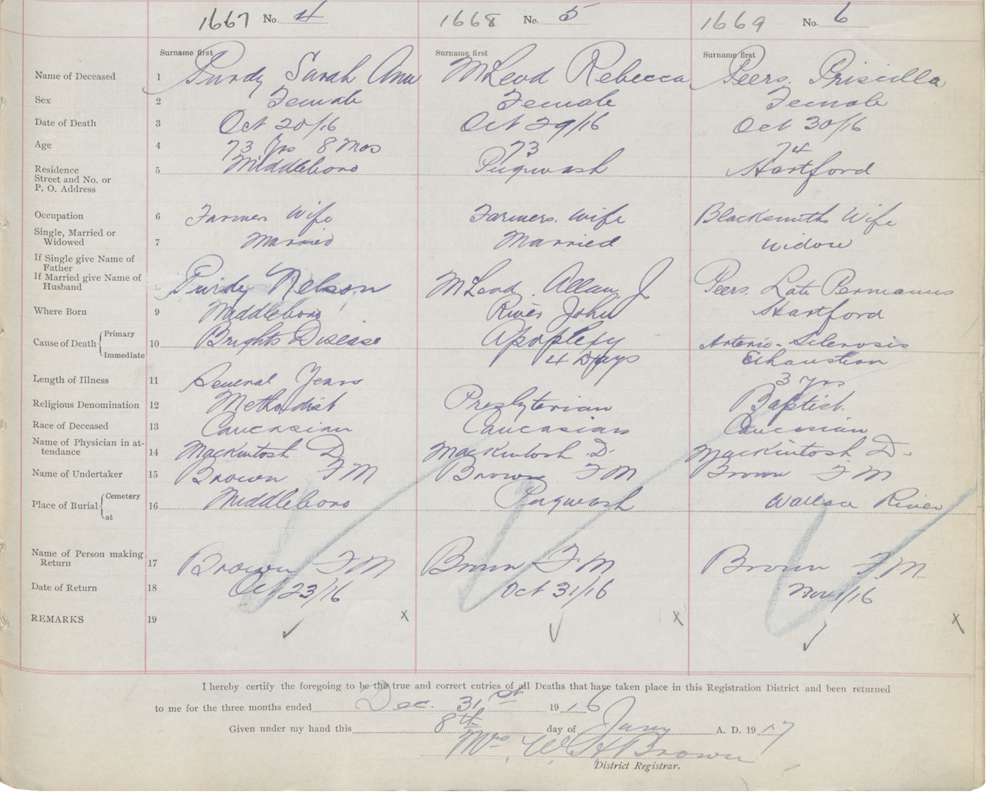 Death Registration: Year: 1916 book: 41 page: 409 number: 1667