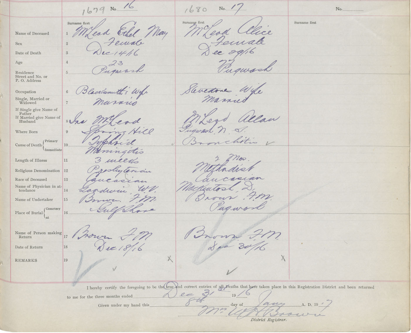 Death Registration: Year: 1916 book: 41 page: 411 number: 1679