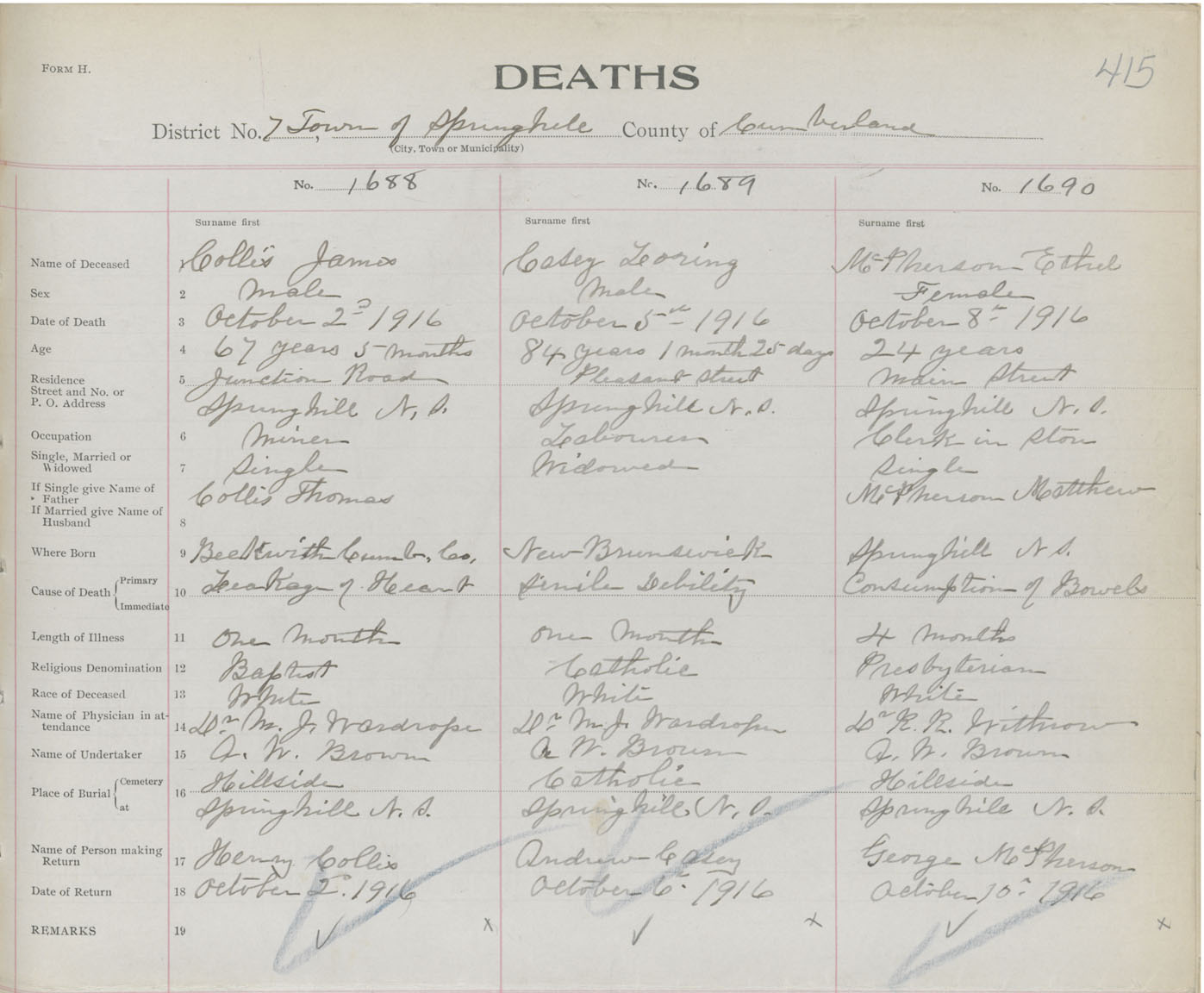 Death Registration: Year: 1916 book: 41 page: 415 number: 1688