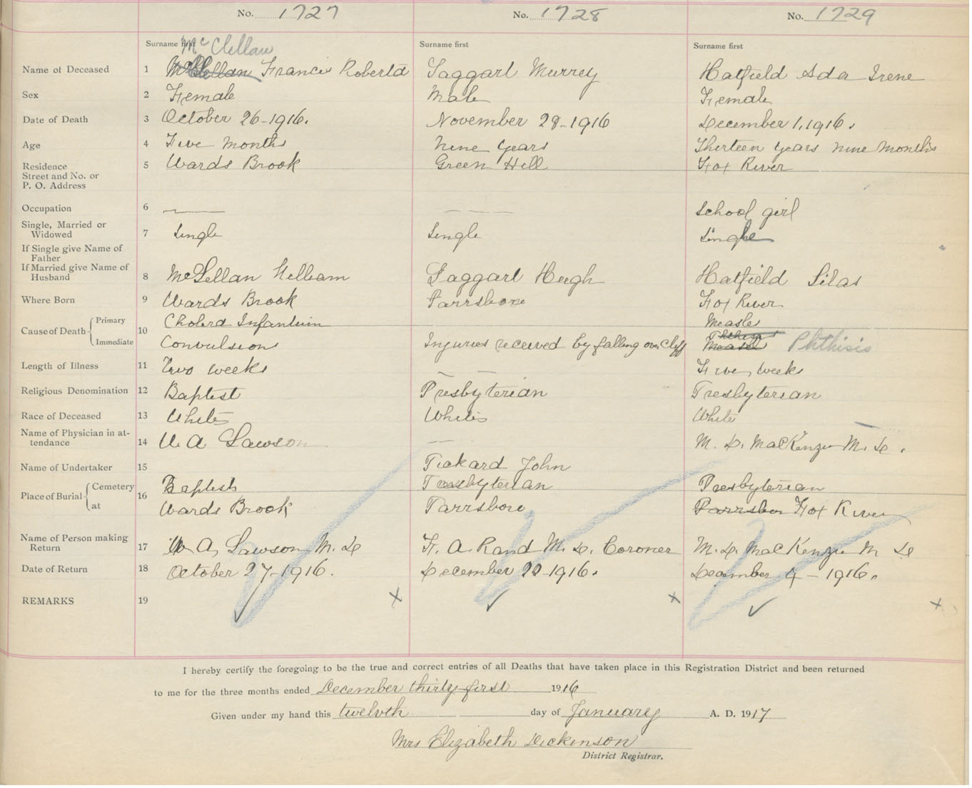 Death Registration: Year: 1916 book: 41 page: 425 number: 1727