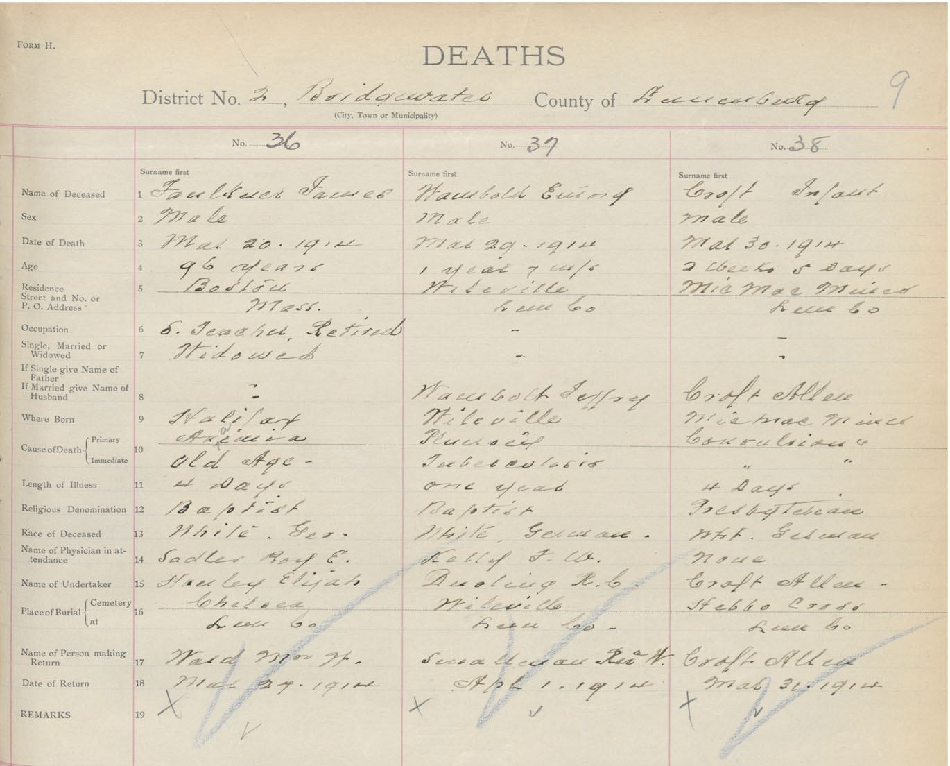 Death Registration: Year: 1914 book: 42 page: 9 number: 36