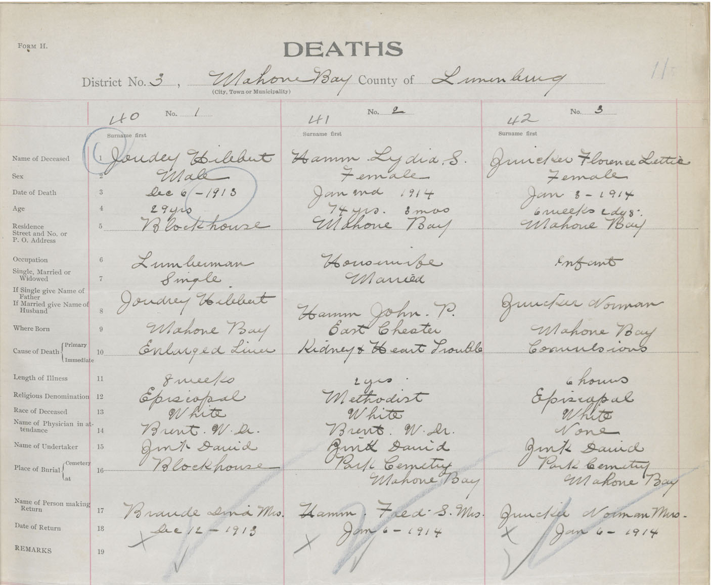 Death Registration: Year: 1913 book: 42 page: 11 number: 40