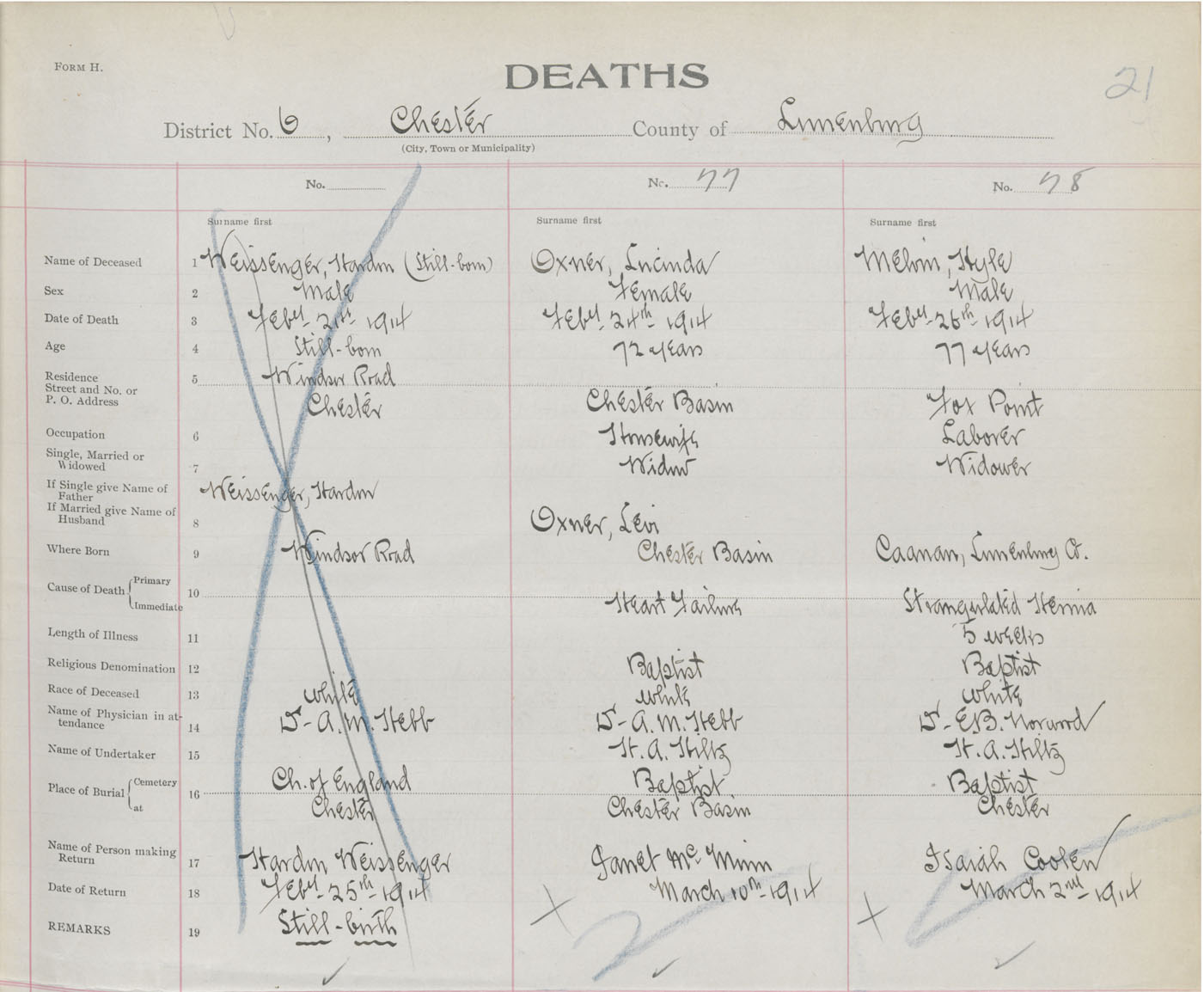 Death Registration: Year: 1914 book: 42 page: 21 number: 77